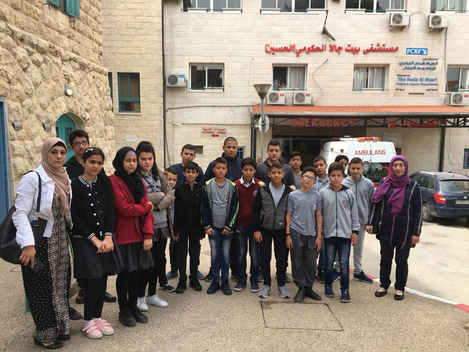 ختاماً لحملة العطاء والأمل الخامسة واستكمالاً لسلسلة الأعمال الخيريّة الّتي نظمتها إدارة المدرسة خلال العام والتي أشرف عليها مدير المدرسة الأستاذ بلال عبد ربه/أبو خالد ضمن لجنة أشرفت على هذه الحملة خلال هذا العام لتكريس مفهوم التضامن الاجتماعي والعمل التطوعي تمّ تنظيم زيارة إلى مستشفى بيت جالا الحكوميّ ( الحسين ) قسم الأورام حيث تمّ تقديم هدايا ماليّة لعدد من المرضى هناك.