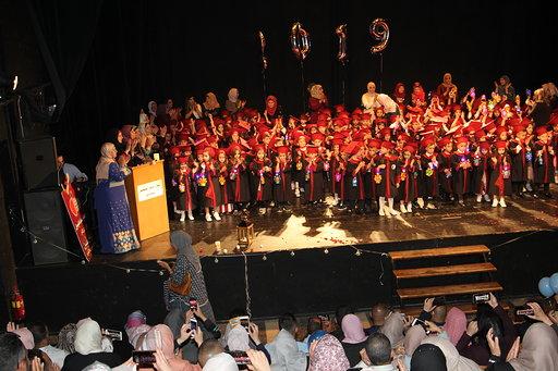 احتفلت روضة المستقبل التابعة لجمعية إمليسون في جبل المكبر بتخريج فوج شموعها العشرون في احتفال جماهيري حاشد صباح اليوم السبت على خشبة المسرح الوطني " الحكواتي" حضره حشد من أهالي الأطفال ورئيس الجمعية السيدة رحاب عبيدية ومديرتها العامة دلال لافي ومديرة الروضة المربية سناء أبو العمل وعدد من أعضاء الجمعية ومديرات الفروع،وقد بدأ هذا الإحتفال الذي تولت عارفته المربية تحرير عطون بالوقوف دقيقة صمت على أرواح شهداء شعبنا الفلسطيني،ومن ثم آيات من الذكر الحكيم رتلها الطالب سامي شحاده،وبرنامج الحفل كان غنياً بالعديد من الفقرات الفنية والتراثية والأناشيد الوطنية والدينية والمسرحيات ذات البعد الوطني ،وقد عكست تلك الفقرات بمجملها تربية وطنية تنمي روح الإنتماء عن الأطفال وتصقل مواهبهم وتطور من قدراتهم في مختلف المجالات والميادين.