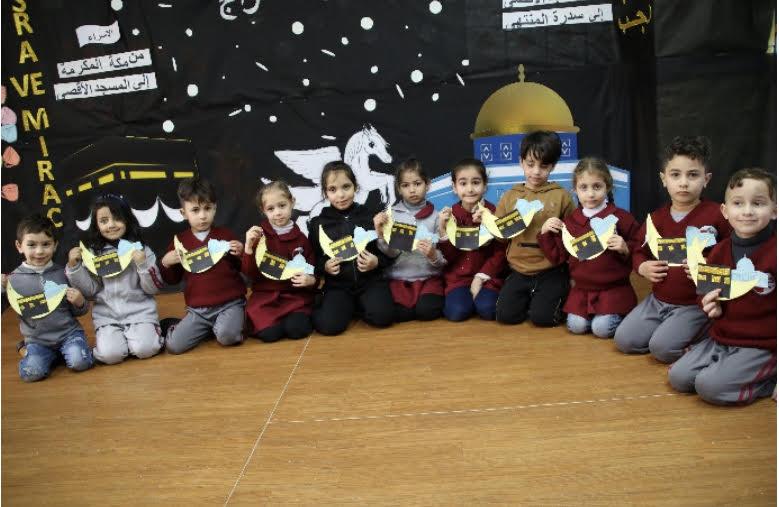 وبهذه المناسبة العطرة نظمت يوم السبت ٢٦-٢-٢٠٢٢ العديد من الفعاليات،التي من خلالها سعت المعلمات الى ترسيخ وتعزيز القيم التي تحملها رحلة الاسراء والمعراج في نفوس الاطفال من ضمنها قيمة الصبر ،الصدق والحديث عن مكانة وقدسية المسجد الاقصى انتقالا الى ركن الاسلام الاساسي وعموده الصلاة ، وتخلل هذا اليوم فعاليات الرسم والقاء القصائد وقراءة القرآن الكريم .